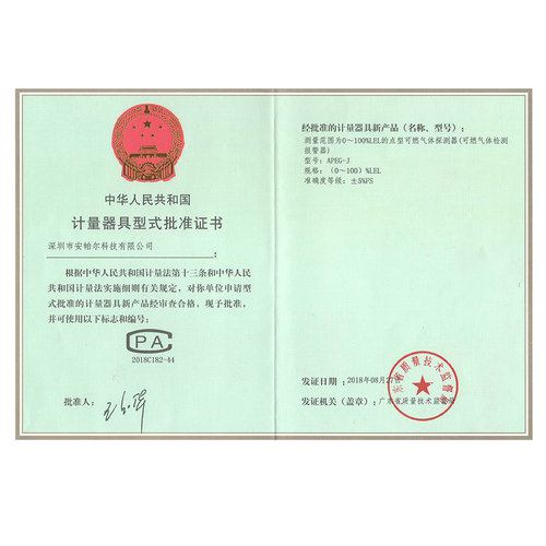APEG-J (0~100)%LEL CPA計量器具形式批準(zhǔn)證書