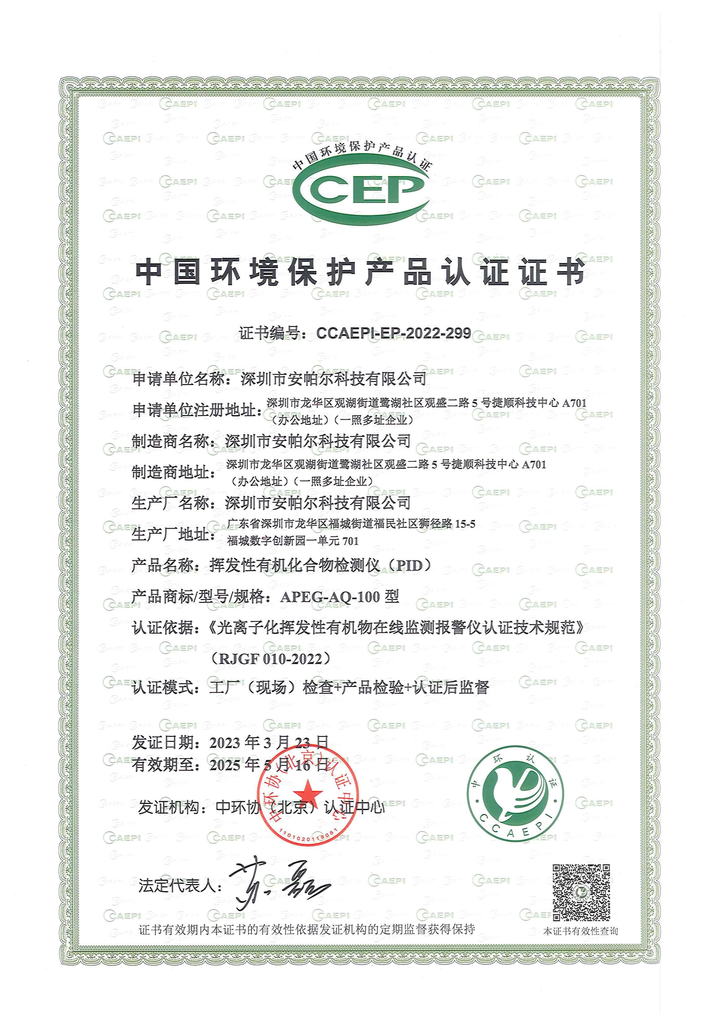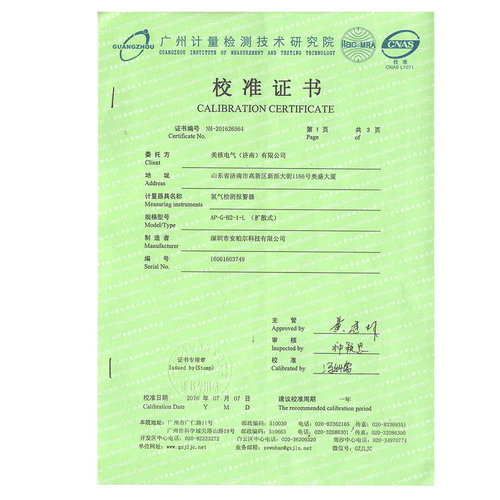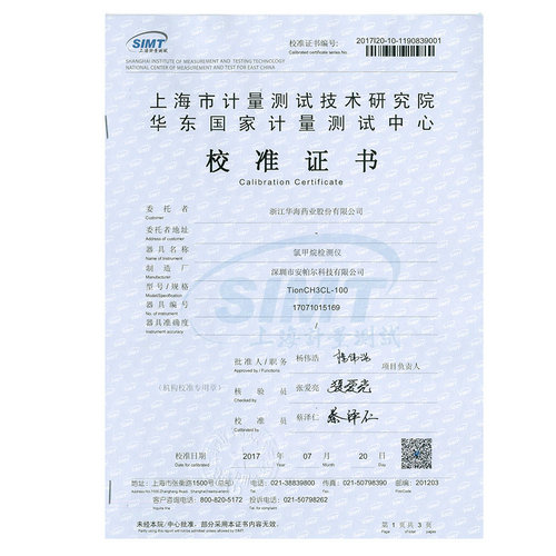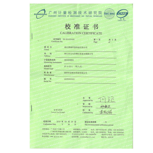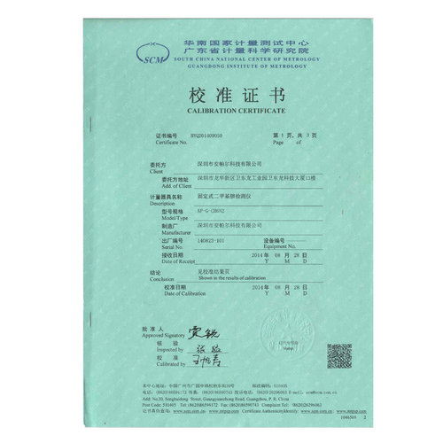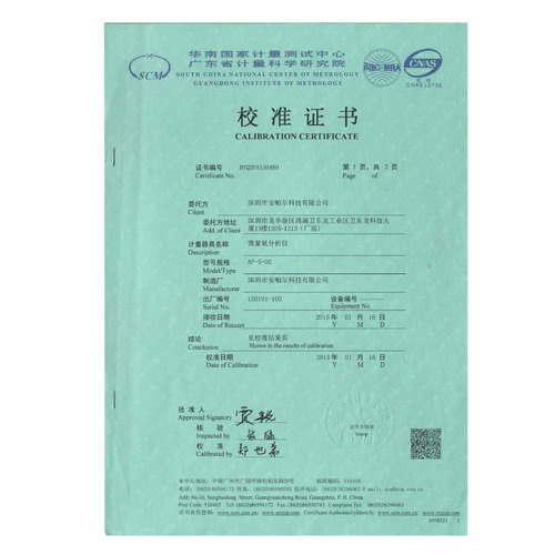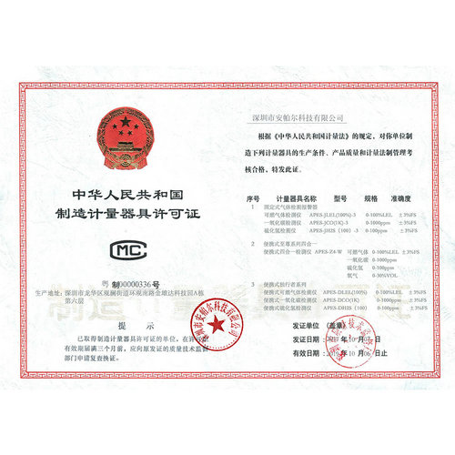 APEG-JH2S (0~100)%μmol-mol CPA計量器具形式批準證書