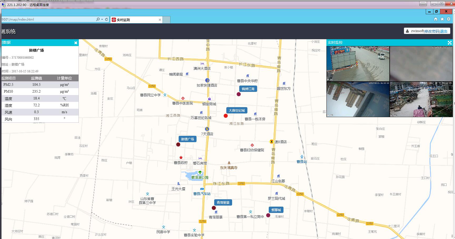 APEY-YC型揚塵視頻在線監測系統支持遠程視頻監控和揚塵在線監測。如下圖曹縣建筑工程管理局遠程視頻監控和揚塵在線監測系統(包括大屏幕,服務器機柜,軟件平臺,硬件設備):