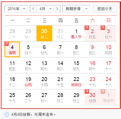 清明節(jié)即將來臨,根據國務院2016年清明節(jié)放假通知精神,結合我司實際情況,作出以下放假安排: