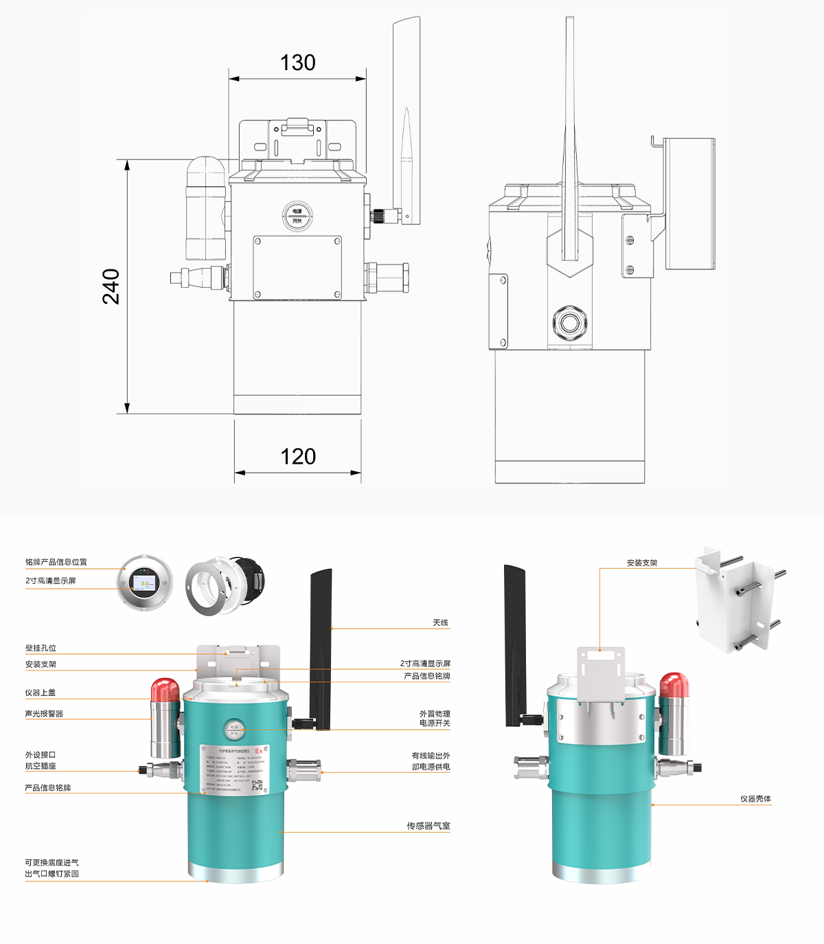 產(chǎn)品簡介:巔峰系列硒化氫復(fù)合型氣分檢測儀是安帕爾公司根據(jù)客戶市場需求和多年行業(yè)應(yīng)用經(jīng)驗推出的一款高端復(fù)合型固定式氣分檢測儀。為了滿足客戶價格需求同樣有定位通用款和專用款兩個版本,專用款是結(jié)合客戶應(yīng)用場景及需求專業(yè)定制,產(chǎn)品更專業(yè)更可靠。其主要功能是:將現(xiàn)場檢測到所有參數(shù)(包括氣體、溫濕度、紫外、光照、甚至水質(zhì)等),轉(zhuǎn)換為對應(yīng)的標(biāo)準(zhǔn)信號(標(biāo)準(zhǔn)信號種類選擇請參考技術(shù)參數(shù)表),然后將信號傳輸?shù)絇LC、DCS、報警控制主機等上位機或直接通過無線信號進入到公司互聯(lián)網(wǎng)管控平臺進行統(tǒng)顯示管理和控制,從而組成功能強大的智能化檢測報警控制系統(tǒng)。巔峰系列硒化氫復(fù)合氣分檢測儀產(chǎn)品采用一體化設(shè)計,支持?jǐn)U散和泵吸兩種采樣方式,可實時檢測可燃,有毒有害氣體,擴散檢測最大可支持5參數(shù)檢測,泵吸檢測最大可支持10參數(shù)檢測,擴散式采樣檢測擁有IP68防護能力,產(chǎn)品本安+隔爆雙防爆設(shè)計,內(nèi)置繼電器,可控制外圍聲光報等器、風(fēng)機、電磁閥等設(shè)備,支持定位、水位檢測、溫濕度檢測、語音播報功能、視頻拍照、防拆震動/傾角檢測等功能選配。設(shè)備連入安帕爾服務(wù)器,可實現(xiàn)遠程監(jiān)測、遠程設(shè)置報警值和遠程標(biāo)定等功能,該系列產(chǎn)品基本適用干任何領(lǐng)域和行業(yè)。 ...